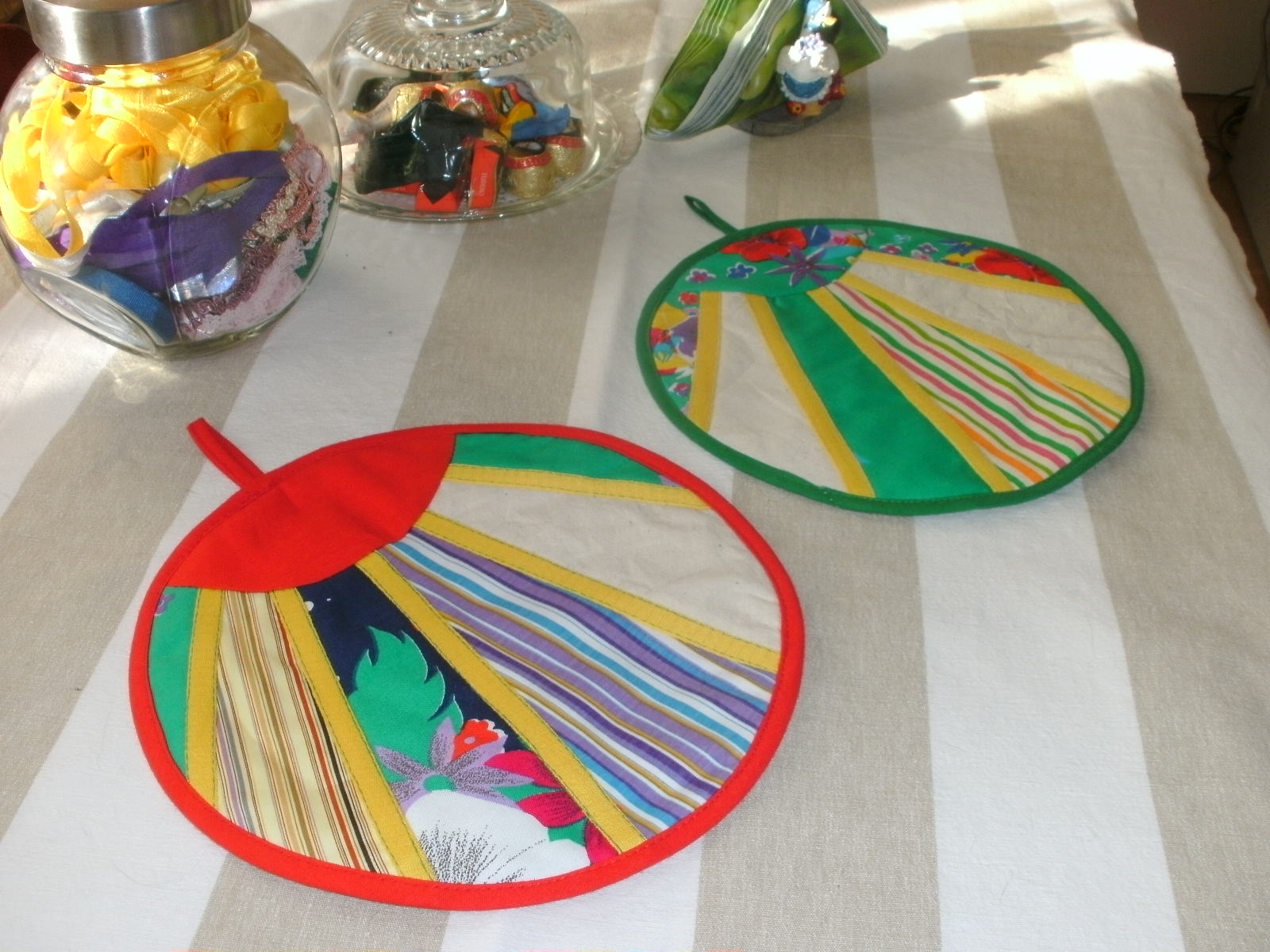 Witam Was milo jesienia.Zaczynaja sie dluzsze wieczory, wiec z pewnoscia bedzie wiecej czasu na prace reczne. Zachecona waszymi pozytywnymi opiniami na temat mojego pierwszego patchworka z ostatniego postu postanowilam nie rezygnowac tylko podejsc do tematu z innej strony, znaczy sie tej najlatwiejszej (mam na mysli ten rodzaj patchworka, ktorego nie da sie nazwac jakas okreslona scisle nazwa a po prostu Crezy Patchwork, ktory powstaje z przypadkowych kawalkow zerbranych zeszytych i wykonczonych.)Uszylam podkladki pod talerze z milym dla oka obrazkiem Sarah Kay w kilku wersjach z przegrodkami na sztucce i wykonczone bawelniana tasiemka(przy okazji pokazuje moj nowy nabytek a mianowicie filizanka z podstawka -angielska porcelana-i dekoracyjny ale w zieleni znany Wam Zwiebelmuster.Ponadto by pobawic sie kolorami uszylam dokladnie ze scinkow dwie podkladki pod talerze badz lapki do garnkow(jak kto woli) oraz znalazlam zastosowanie dla tkaniny kupionej rok temu bez pomyslu na zagospodarowanie.Poniewaz tkanina to "Elfiki jesienne" , bardzo na czasie , wiec uszylam z niej torbe usztywniona gruba i sztywna Aida do haftowania i w srodku wykonczylam podszewka w kolorze wylozenia.Znalazlam bordowe pomponiki w moich przydasiach, ktore sie tu bardzo przydaly..A zeby nie bylo ze szyje tylko male rzeczy uszylam duzy bieznik na stol z wykorzystaniem techniki boutis, patchworka i pikowania, co dalo mi efekt quilta..mily w dotyku, przyjemny i z wieloma zastosowaniami(bieznik, narzutka, obrusik, mala kolderka).Jezeli natomiast jestescie ciekawe co dalej z moim zacieciem na prawdziwy patchwork to musicie niestety poczekac bo mam w planach przygotowac bozonarodzeniowe skarpety na prezenty dla wnuczat tez z wykorzystaniem kawalkow materialow oraz rozne podkladki i drobiazgi dla domu dla moich corek i synowch(czeka mnie duzo pracy).Zycze Wam sloneczka na caly nadchodzacy tydzieni ide poogladac Wasze blogi.Z pozdrowieniami.