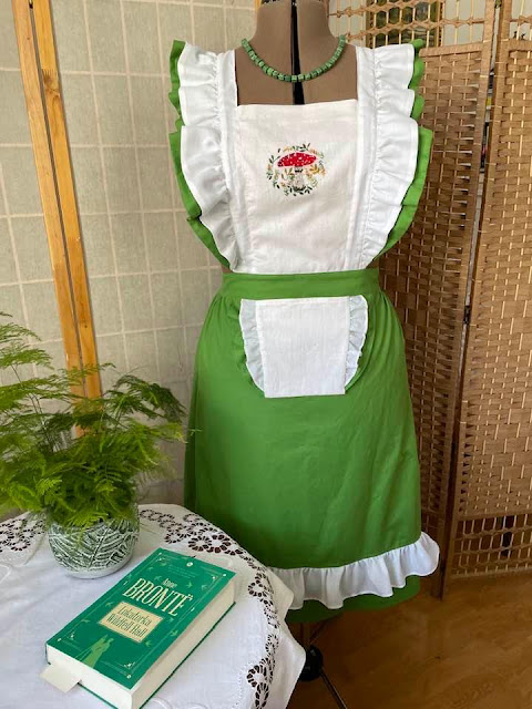 Zajawke jesiennego fartuszka pokazalam w poprzednim poscie.Muchomora haftowalam recznie,a sam wzor fartuszka znalazlam na Instagramie.Teraz fartuch jest juz ukonczony,Zalaczam Wam w postaci zdjec maly tutorial z szycia na wypadek, gdybyscie chcialy uszyc sobie podobny.W pierwszej kolejnosci uszylam gore fartucha czyli stanik z falbankami po bokach i wiazaniem na szelki.Nastepnie powstal dol fartucha czyli spodnica.